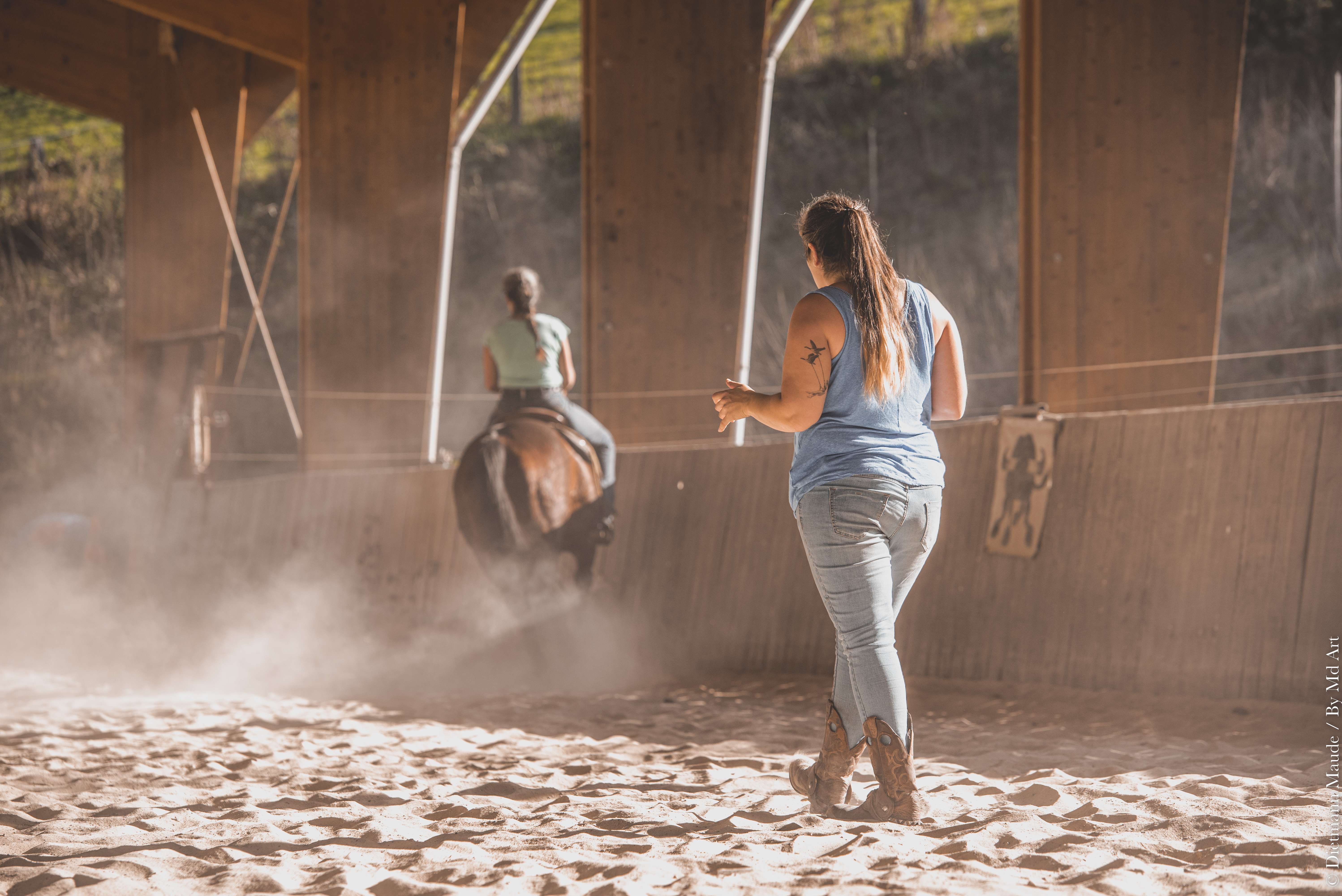 L’apprentissage de l’équitation western est déconcertant car il permet d’accéder rapidement à de très belles allures (petit trot et petit galop rassemblés qui assurent confort et sécurité pour le cavalier et pour le cheval) et à l’ensemble des manœuvres de bases (reculer, pivots antérieurs et postérieurs, pas de côtés, épaule en dedans, appuyers, etc…)...